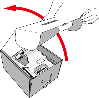 请将上盖打开到上图所示位置。若开口过大,则包装物品可能冒出。