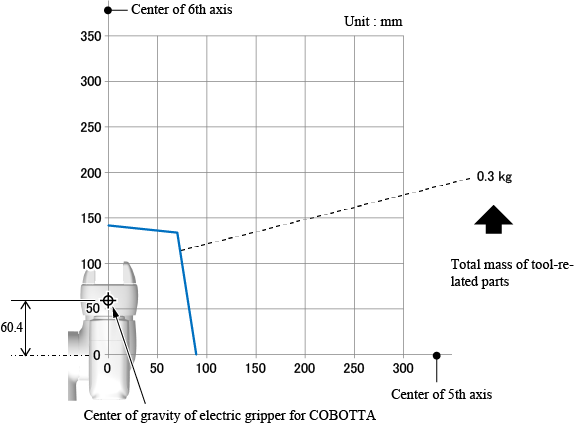 此外,计算工具相关部分的总质量时,请加上COBOTTA用电动夹钳的质量(0.2 kg)。