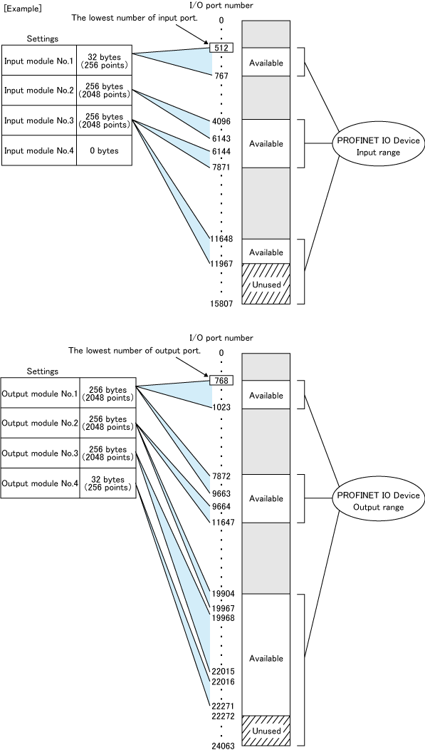 根据输入模块和输出模块的设定,实际可使用的I/O端口编号的范围不同。