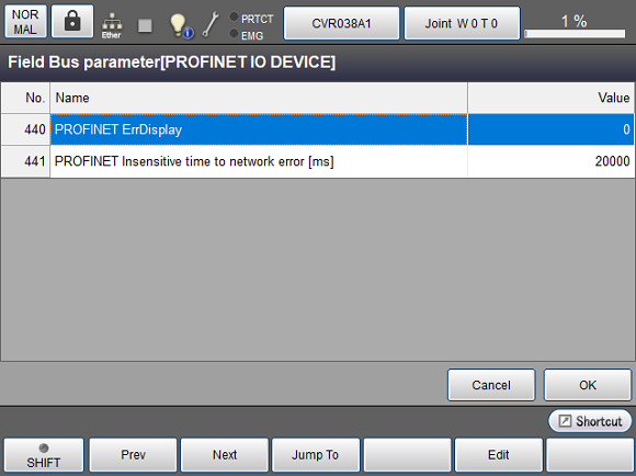 启动COBOTTA,如果到开始PROFINET通信的通信状态检测的时间较短,则启动后立即发生[8350200B:正在进行现场网络通信准备]。在该情况下,延长并调整异常检测等待时间(ms)。