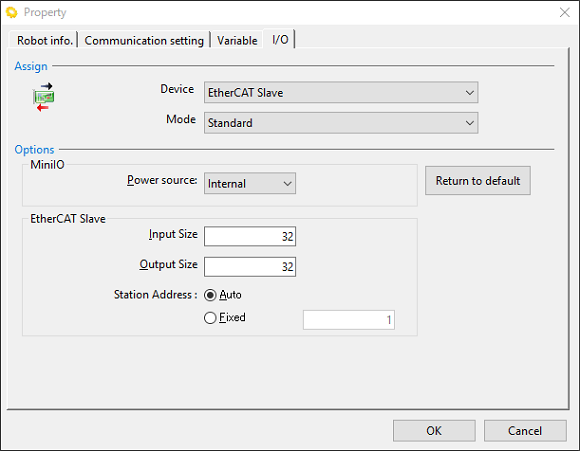 将现场网络接口模块作为EtherCAT Slave使用时,需要在WINCAPSIII的 “设定项目” 中设定以下参数,发送到COBOTTA。