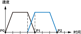 如果由“@P”指定通过起始位移,则之前的动作减速与下一个动作同时开始。因此,如下图所示,通过起始位置和通过经过点“P1”间的距离L根据速度、加速度发生变化。