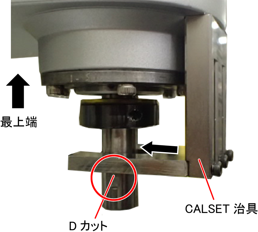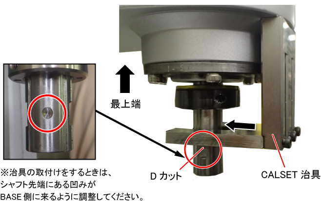 Dカット部分を挟み込むようにCALSET治具を装着してください。