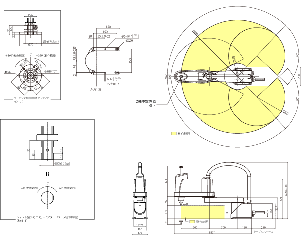 外形寸法と動作範囲