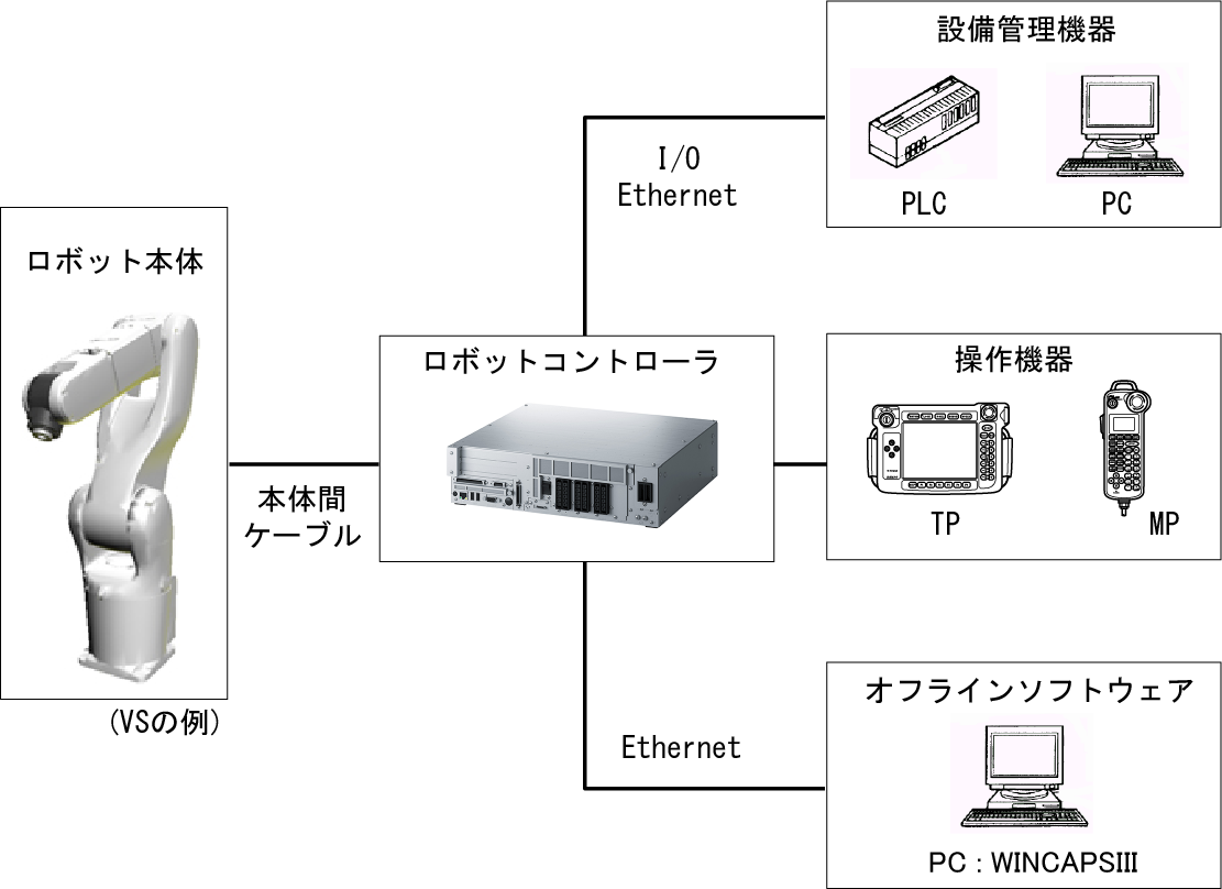 また、操作機器によってロボット本体を操作し、ティーチングを行います。