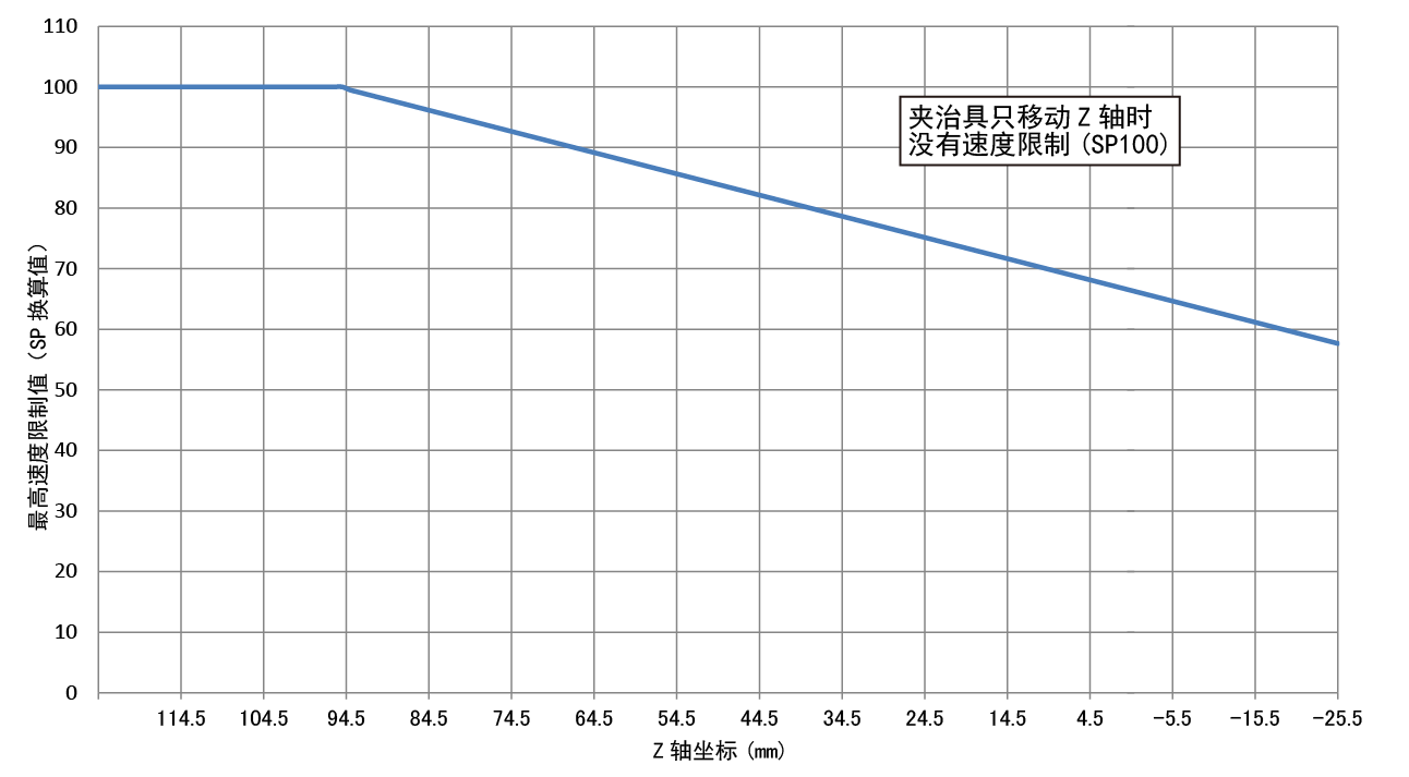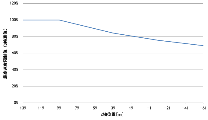 动作结束位置的Z轴坐标为0mm的情况下,Z轴坐标为70mm时,SP100运行时的最高速度限制值为91