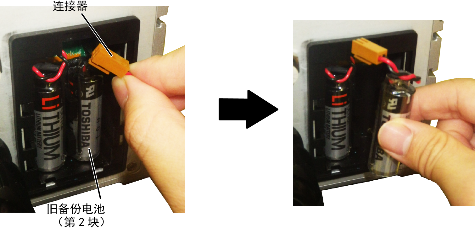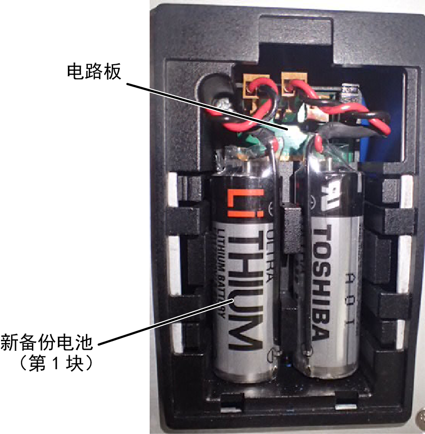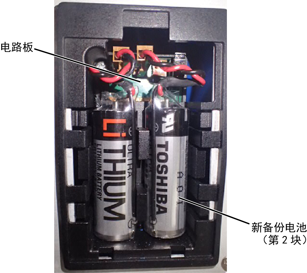 务必更换2块备份电池。如果不同时更换2个,则会缩短备份电池的寿命。