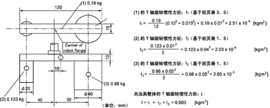计算夹治具和工具的T轴旋转惯性力矩时,参考以下惯性力矩计算公式。