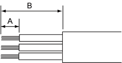 お客様手配のケーブルの端末処理をします。A,Bの寸法、ケーブルの線径は各コネクタメーカの仕様に従ってください。