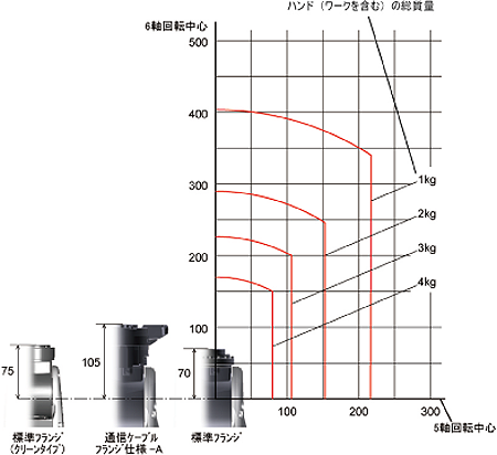 ロボットのハンドを設計するときは、以下の項目がロボットの仕様を超えないように設計します。(ロボットの仕様参照)