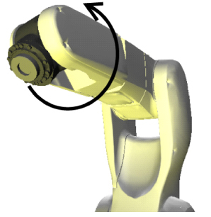 第4軸を手でゆっくりと正方向(アーム先端側から見て反時計方向)に止まる(360°付近)まで回転させます。