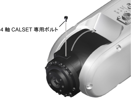 下図の位置に4軸CALSET専用ボルトを装着し、第5軸を手で負方向端に静かに押し当てます。