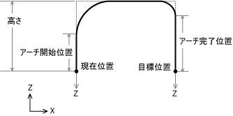 ArchMove 目標位置, 高さ[, アーチ開始位置[, アーチ完了位置]]