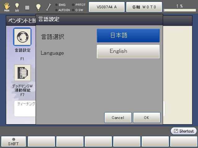 言語設定を変更するには当画面での設定後、コントローラの再起動が必要です。