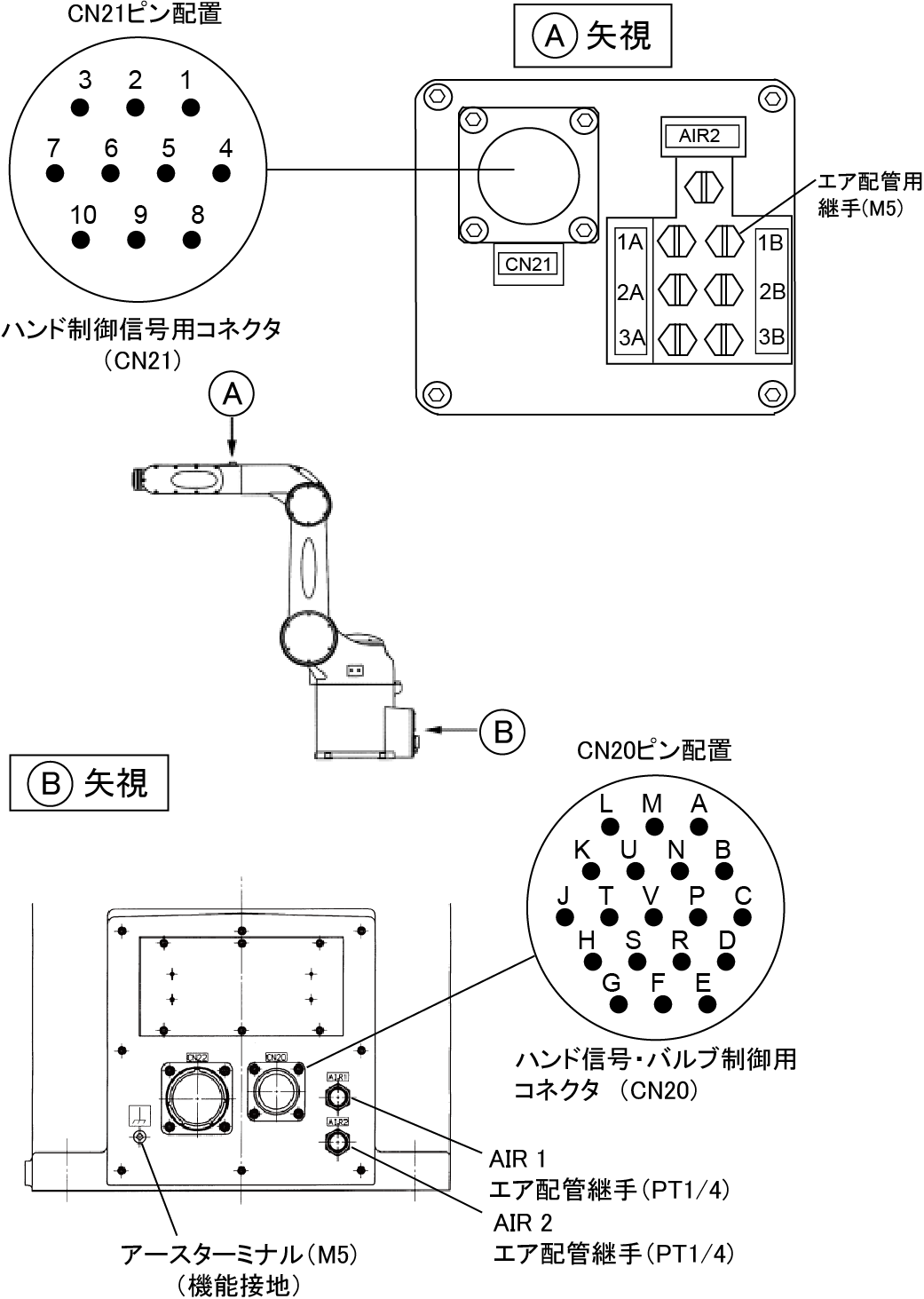 *1 : 2019年5月頃よりコネクタを変更しています。コネクタは互換性があるため、どちらのコネクタでもロボットとの接続が可能です。ただし、適合配線径が旧品のものと異なります。変更後のコネクタを使用する場合は上記表記載の適合配線径に適したケーブルを使用してください。