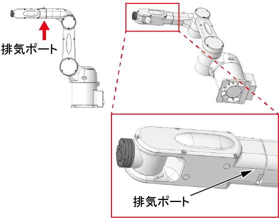セカンドアーム裏側にある電磁弁の排気ポートは塞がないでください。