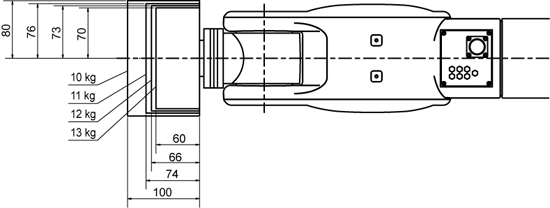 ハンド・ツール(ワークも含む)の重心位置が、下図の範囲におさまるように設計してください。
