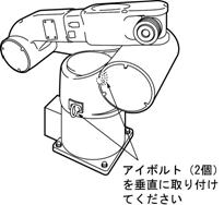 - アイボルトをはずしてからロボットを動作させてください。アイボルトを付けたままロボットを動作させると、ロボットアームとアイボルトが衝突する危険があります。