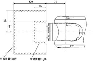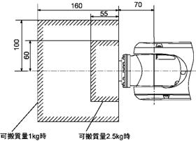 ハンド・ツール(ワークも含む)の重心位置が、下図の範囲におさまるように設計してください。