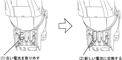 用意した新しいバックアップ電池を、1本ずつ順に、古いバックアップ電池と交換します。
