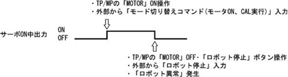 - ティーチングペンダント、ミニペンダントの「MOTOR」キーONの操作を行なったとき。
