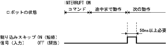 この信号がON(短絡)されると、ただちにロボットは現在実行中の動作を停止し、次のステップの実行を開始します。