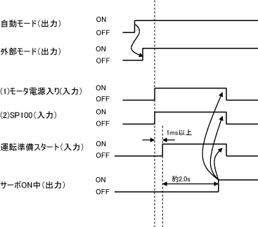 運転準備スタートおよび(1),(2)の入力タイミングは下図を参照してください。