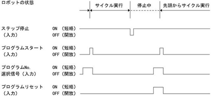 - 中断したプログラムNo.と同じプログラムNo.を先頭から実行する場合にも、プログラムNo.選択信号は必要です。