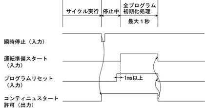- プログラムリセット入力は、運転準備スタート信号より先に(1ms以上)入力してください。