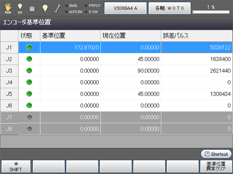 操作経路:[F2 アーム] - [F12 保守] - [F2 エンコーダ] - [F9 エンコーダ基準位置]