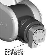 CALSET治具を時計回りに回し、ピンをボルトに軽く当てます。