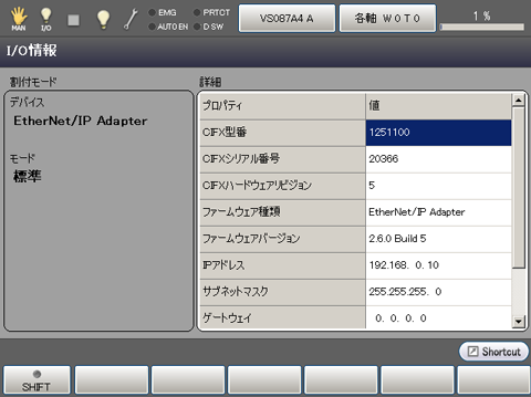 操作経路:[F4 I/O] - [F6 補助機能] - [F1 I/O情報]
