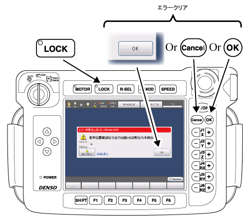 RC8Aロボットコントローラの電源を切り、電源を再投入します。