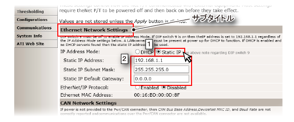 サブタイトル[Ethernet Network Settings]のパラメータを編集します。