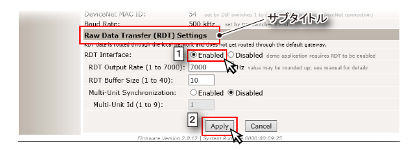 サブタイトル[Raw Data Transfer (RDT) Settings]のパラメータを編集します。
