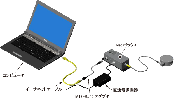 コンピュータのWebブラウザからNetボックスにアクセスして、パラメータ設定と通信設定を行います。