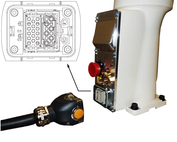 本体間ケーブルのコネクタを、ロボットのコネクタにまっすぐ挿入します。