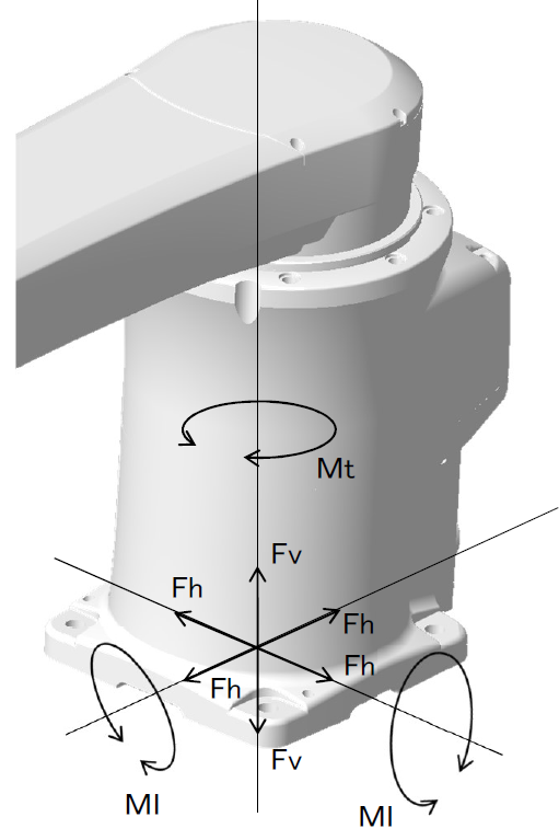 ロボットを設置する架台は十分な剛性を持たせてください。質量の大きい他の設備などとロボットの架台を機械的に結合させるなどすると有効です。