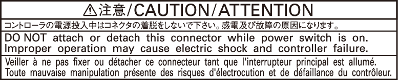 コントローラの電源投入中はコネクタの着脱をしないで下さい。感電及び故障の原因になります。 |