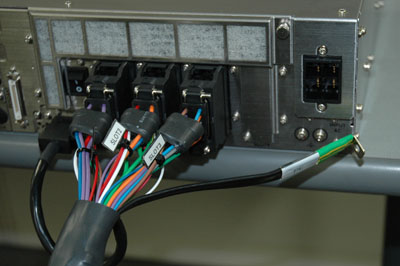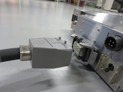 モータ線の3つのコネクタの位置関係を確認します。各コネクタにはタグが付いています。このタグに合わせて接続します。