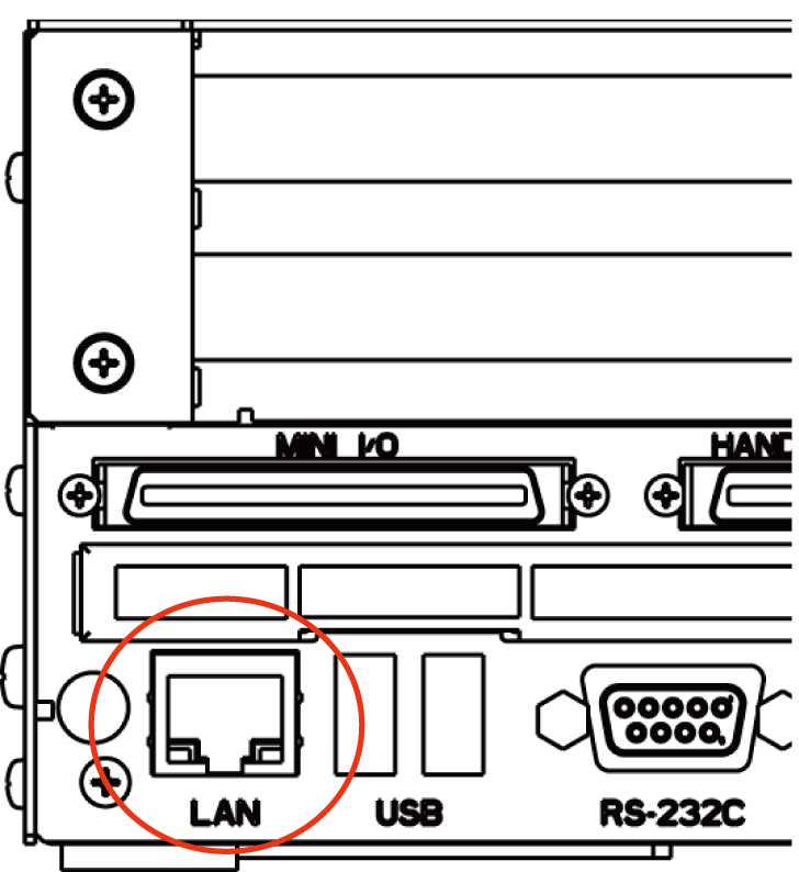 LANポートを使用して通信を行う場合は、ティーチングペンダントで通信設定を行います。詳細は、ティーチングペンダント操作ガイドの「通信設定画面の表示・変更 」を参照してください。
