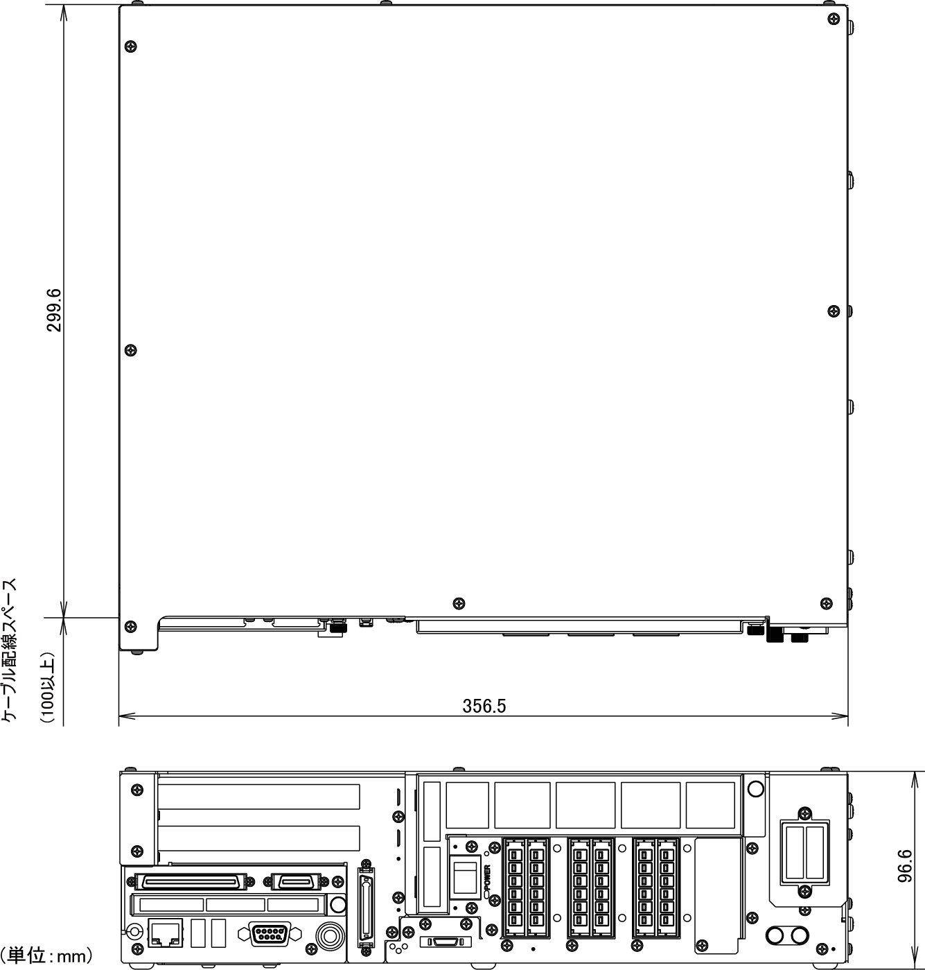 セーフティI/Oレス仕様のロボットコントローラの外形寸法を下図に示します。