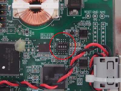 ボード上のSW1の1番ポートを設定してください。