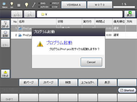 ステップ3のプログラム一覧画面で[F4 サイクル起動]を押します。