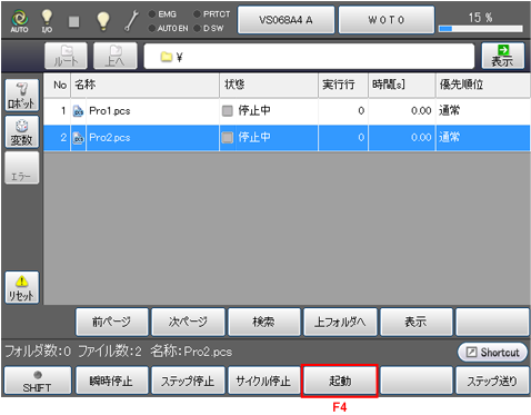 選択したプログラムが反転表示されていることを確認して、[F4 起動]を押します。