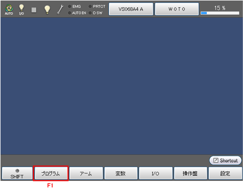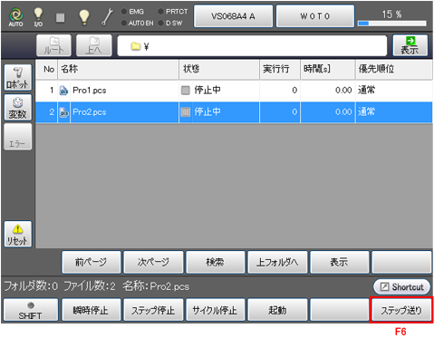 選択したプログラムが反転表示されていることを確認して、[F6 ステップ送り](または右カーソルキー)を押します。