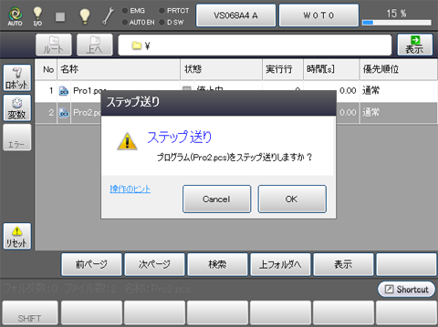 [ステップ送り]ダイアログボックス内の[OK]を押します。