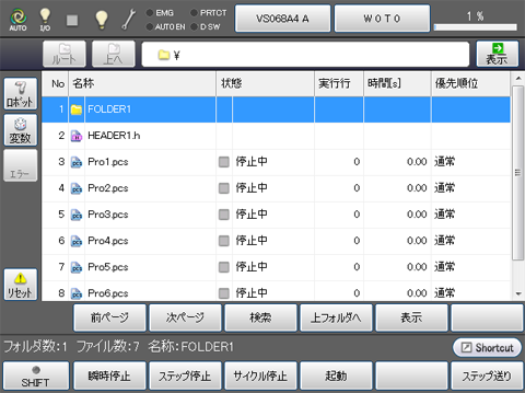 | [F4 起動] | 選択したプログラムを1サイクル起動、もしくは、連続起動します。 |