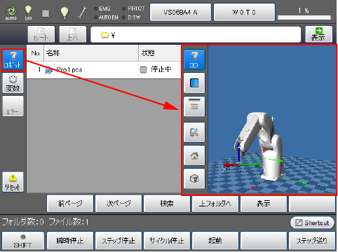 | [F2 ステップ停止] | 実行中のプログラムをステップ停止します。 |