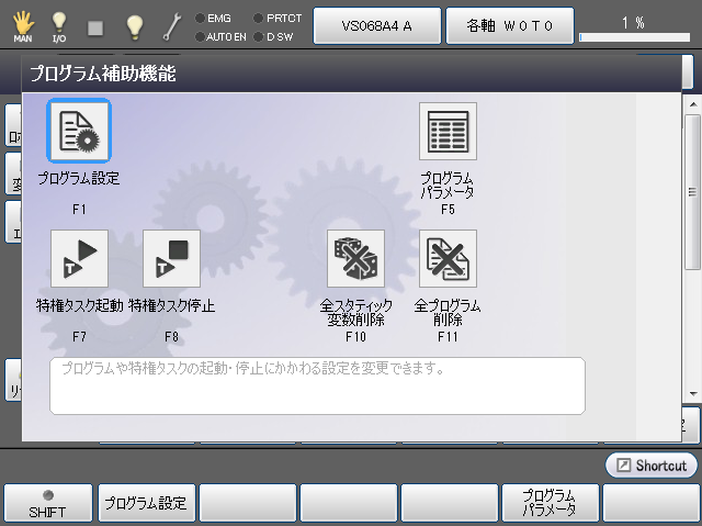 [F6 補助機能]を押すと、次のような[プログラム補助機能]ウィンドウが表示されます。